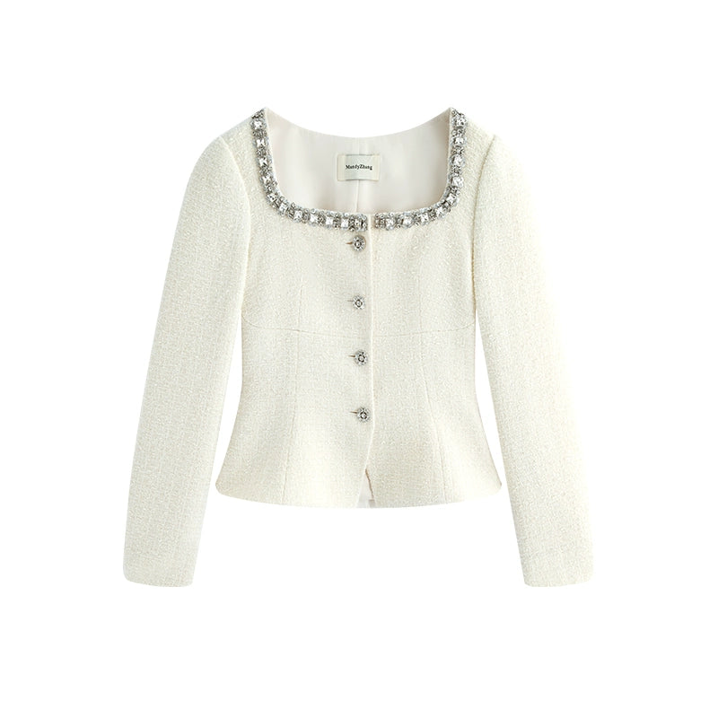 Ein Ensemble, das Licht trägt. Material: Baumwollmisch-Tweed mit KaschmiranteilÉCLAT D’IVOIRE – DIE PERLEN DER STILLE