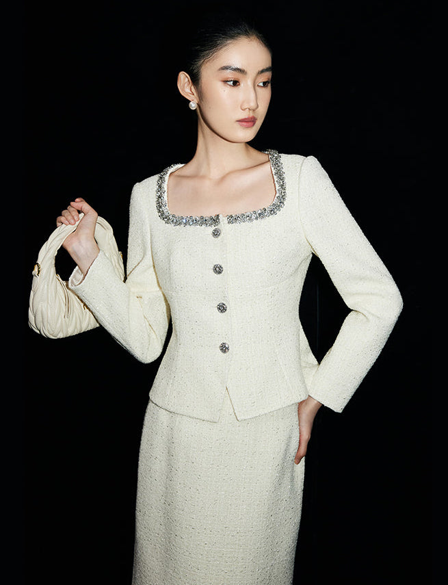 ÉCLAT D’IVOIRE – TWEED-ENSEMBLE MIT PERLENDETAILS